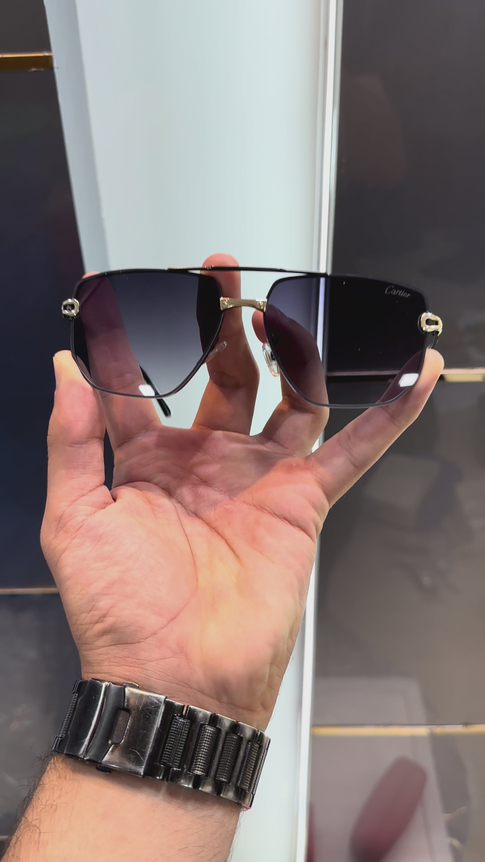 CARTIER PURPLE LENS BLACK FRAME SHADE SUNGLASS WITH OG BOX