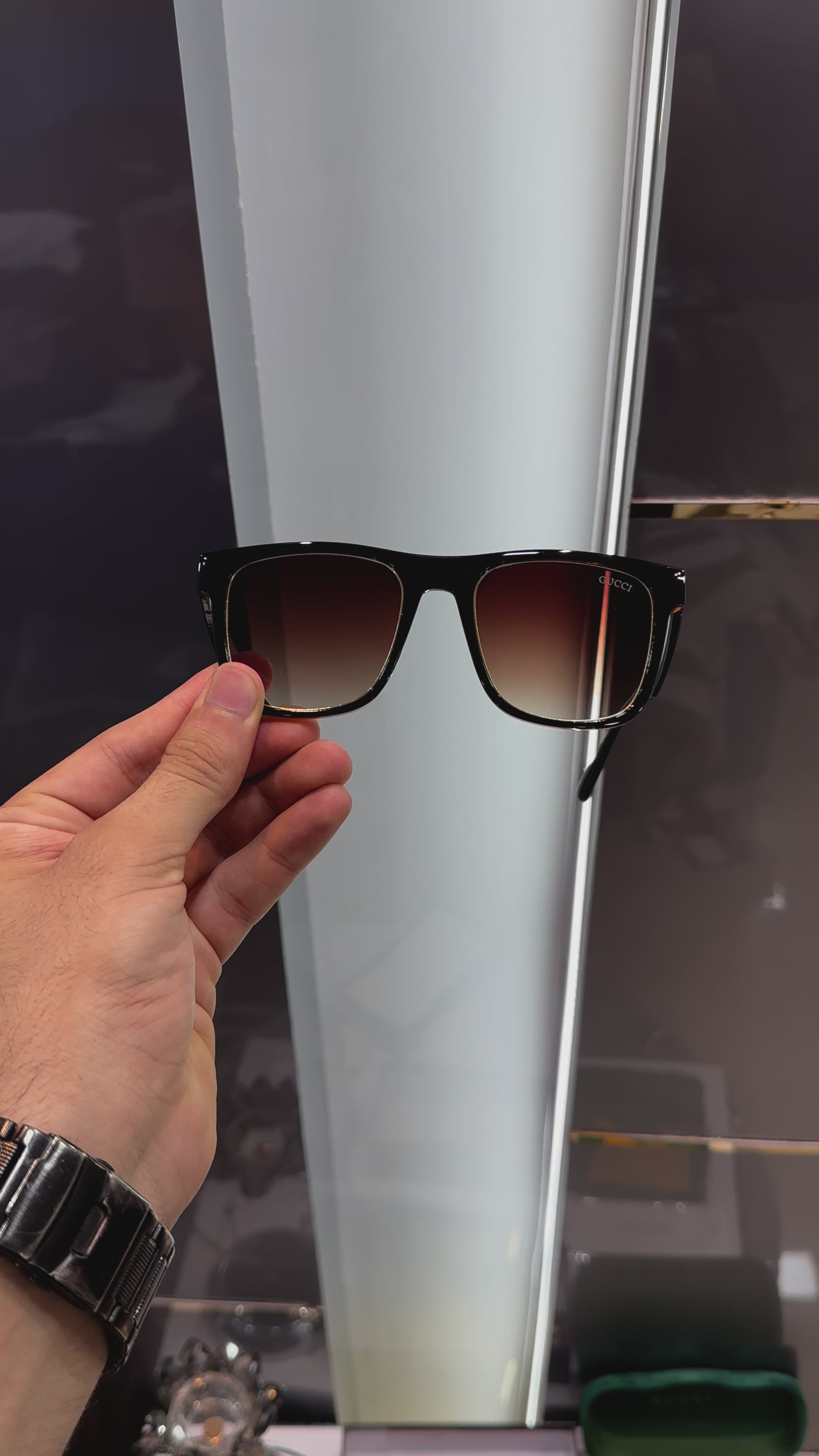 GUCCI PREMIUM SUNGLASSES - BROWN BLACK WITH OG BOX