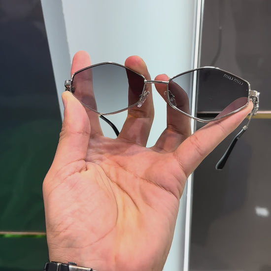 MIU MIU SILVER PREMIUM SUNGLASSES LOGO MONOGRAM WITH OG BOX