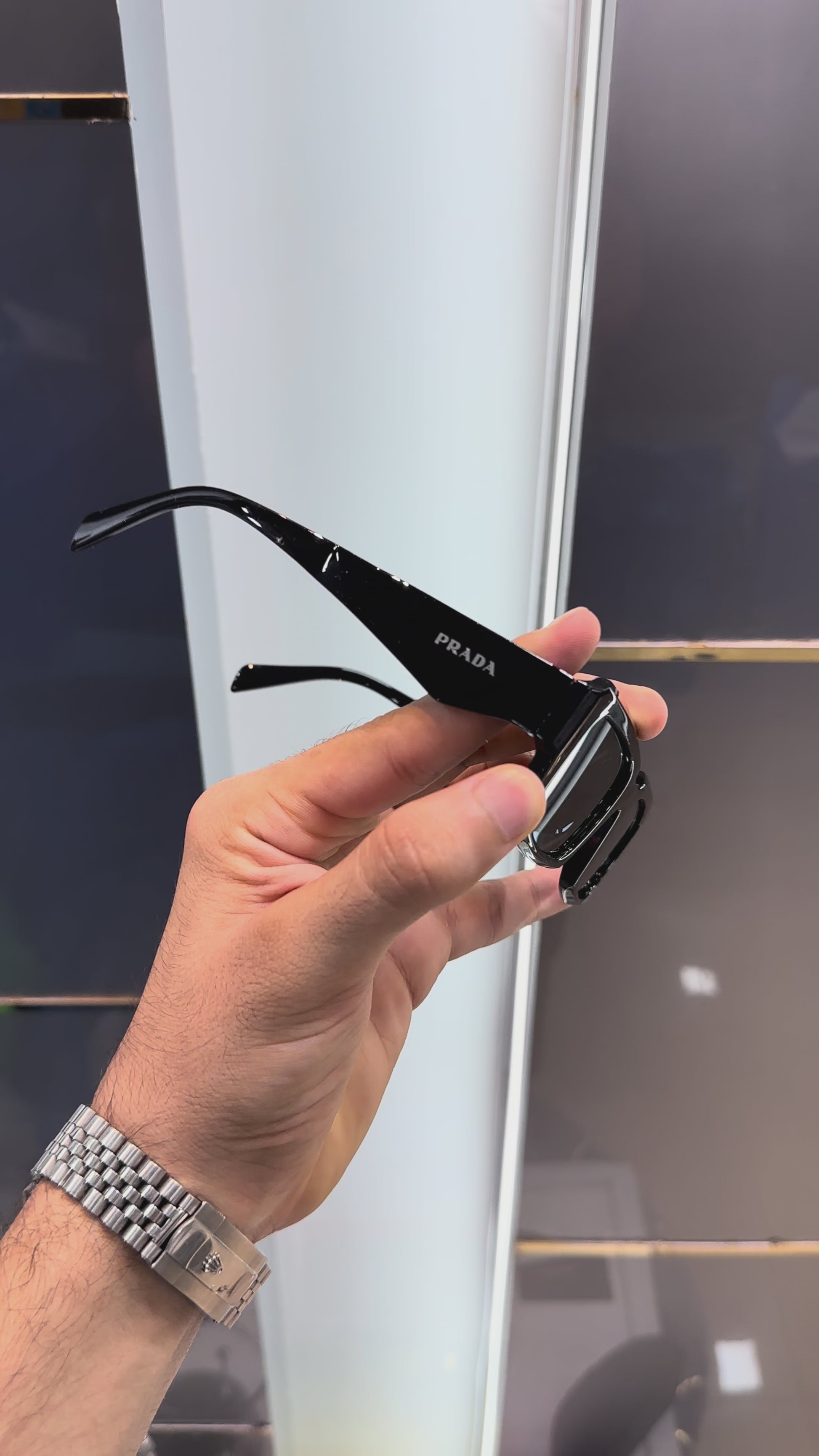 PRADA MILANO RECTANGLE BLACK FRAME SUNGLASSES WITH OG KIT